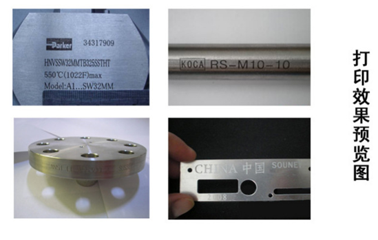 其特点是正规、清晰、耐久、不变色、不脱落、耐高温、不怕有机溶剂擦洗。不论产品大小、平面、弧面、薄片都能打印。打印精细,深度在5-100um,操作简便,只需几秒即可成像,无须烘干固化。